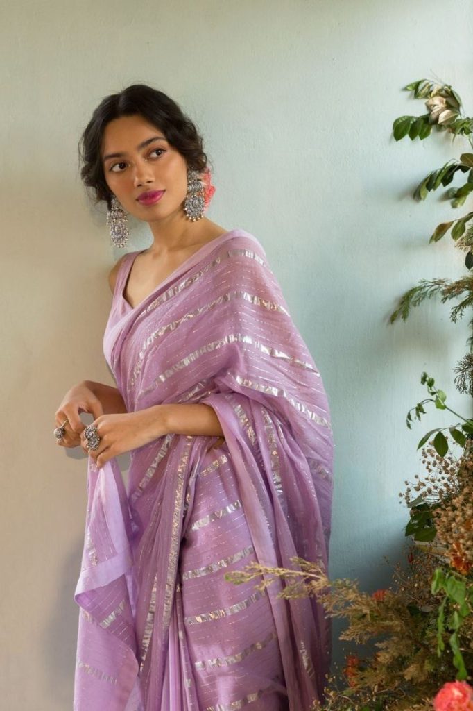 ๐ Try georgette sarees with contemporary blouses and heels for parties.